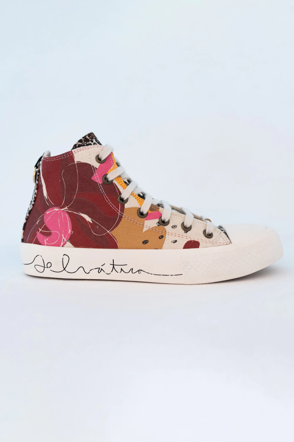 Zapatilla de corte botita, vulcanizada con diseño exclusivo de UTZZIA. Cuenta con cordones de algodón, suela resistente y detalles personalizados que elevan el look urbano con un toque distintivo. Horma grande: se recomienda consultar la tabla de talles disponible al final de las fotos antes de comprar.