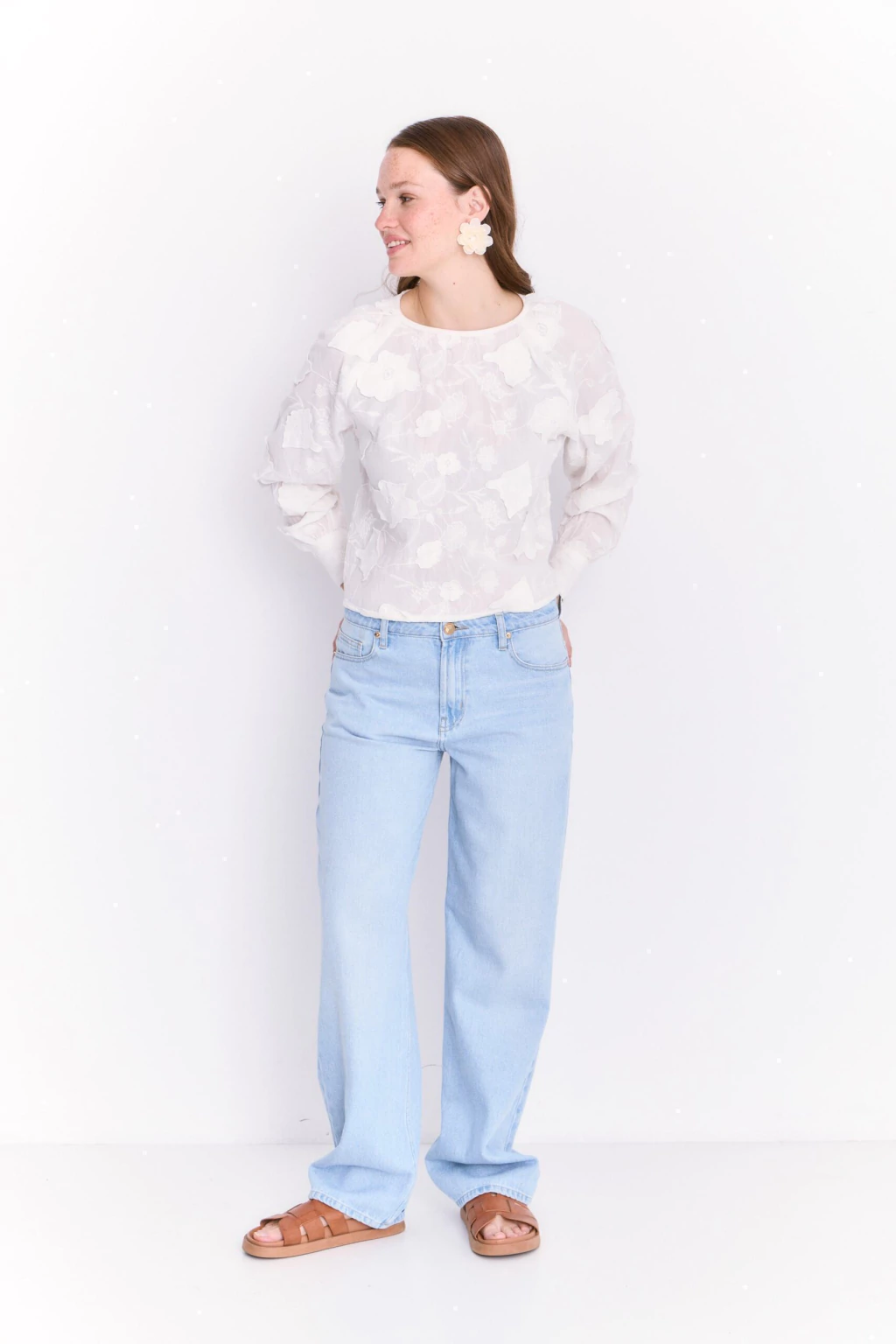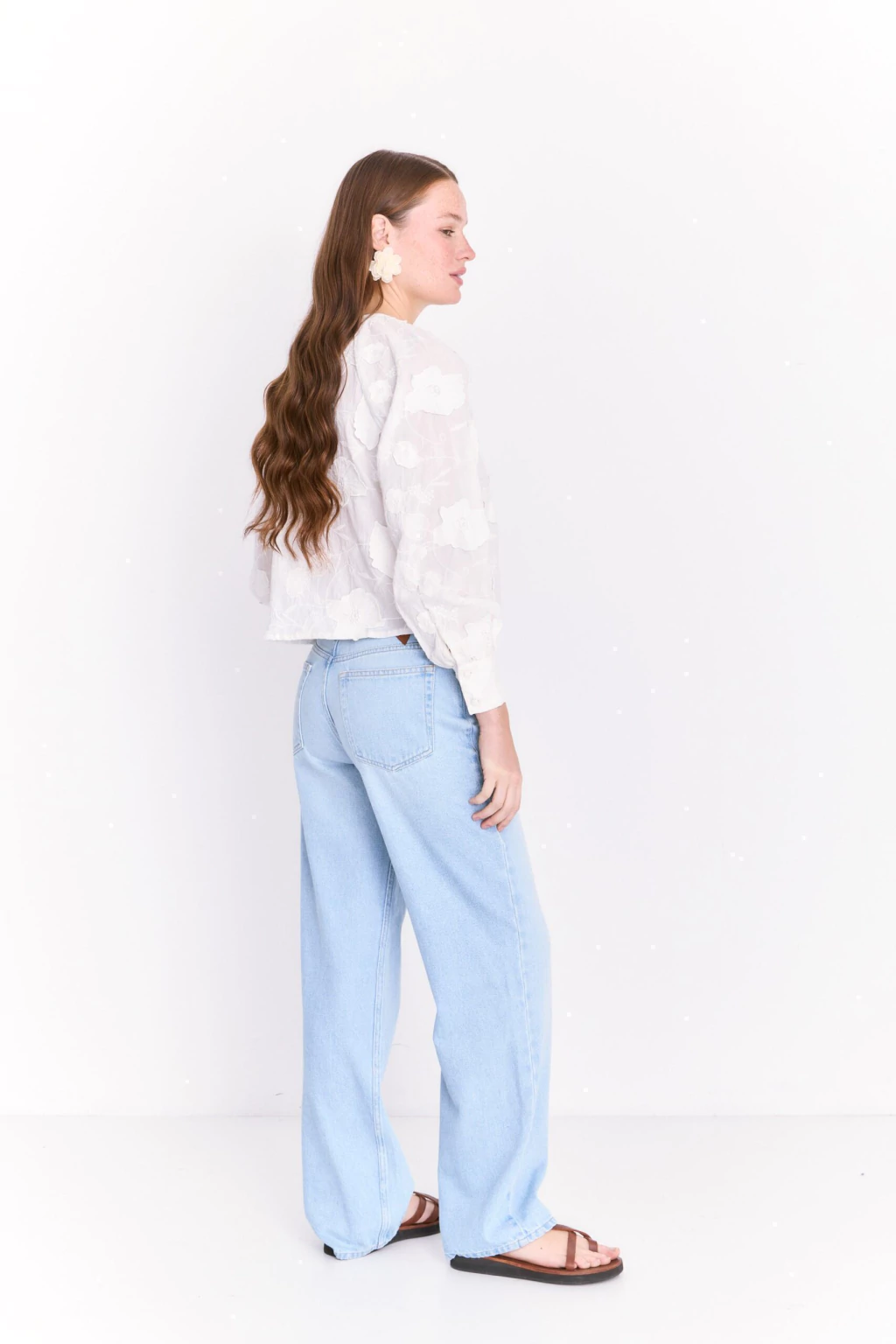 El Jean Amarilis de Utzzia está confeccionado en denim 100% algodón, con corte recto y tiro medio que asegura un calce cómodo y atemporal. Su diseño de cinco bolsillos y cierre frontal con cremallera y botón metálico lo convierten en un básico imprescindible para looks versátiles y urbanos.