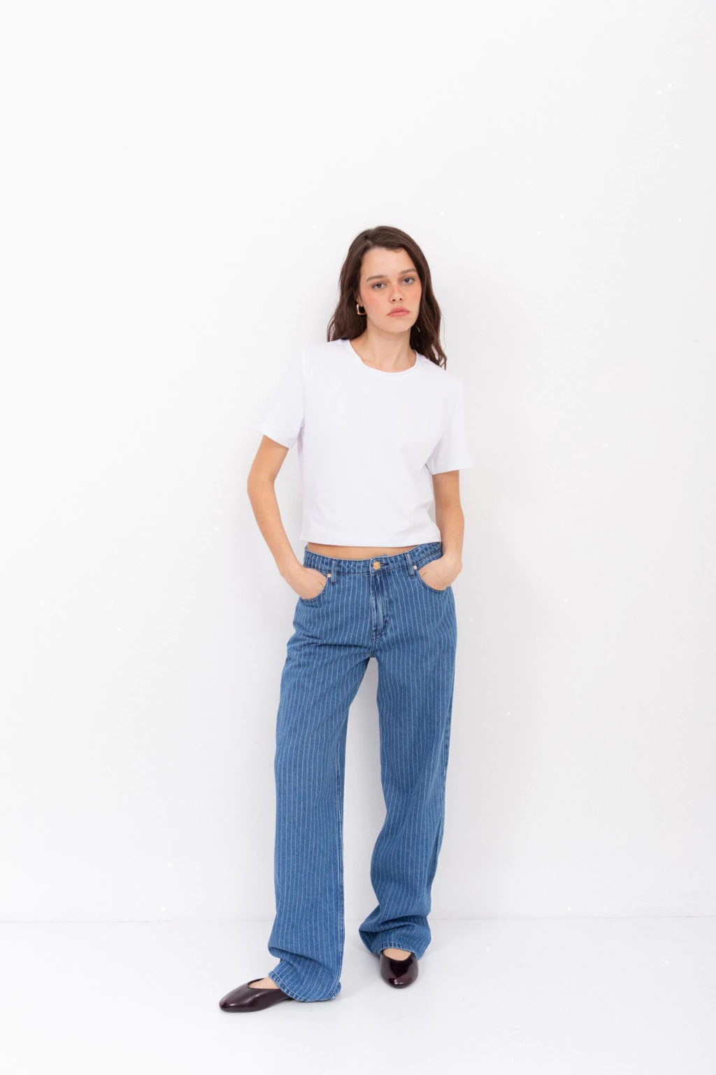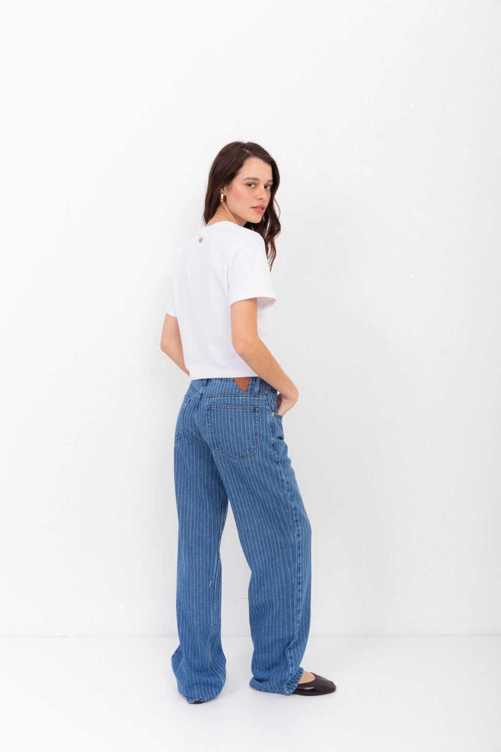 El Jean Tulipán de Utzzia está confeccionado en denim 100% algodón con corte recto y tiro medio, logrando un calce clásico y versátil. De diseño cinco bolsillos, presenta cierre frontal con cremallera y botón metálico. Su efecto rayado aplicado con láser añade un toque moderno y original, ideal para looks urbanos y casuales.