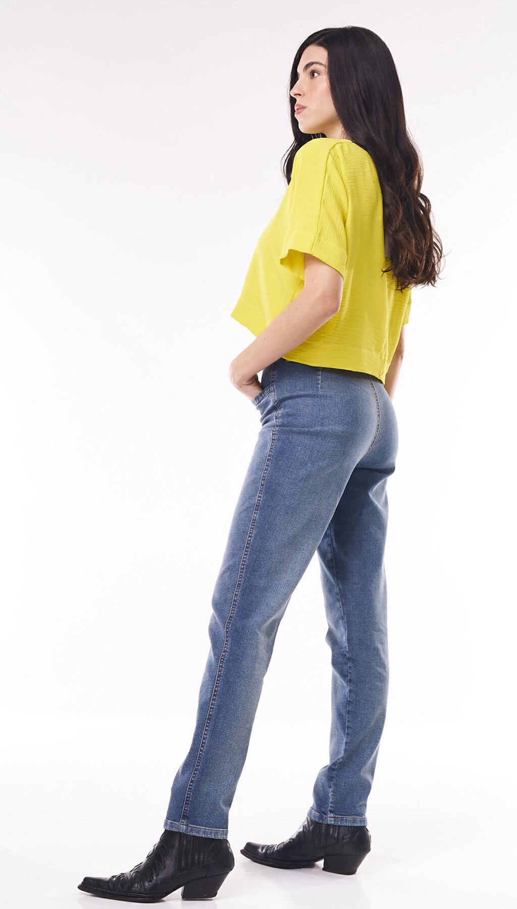 El Jean Wide High Waist de UTZZIA redefine el estilo denim con una silueta bien alta y moderna. Su diseño presenta botamanga más ajustada, costura frontal en forma de “V” que estiliza la figura y un toque distintivo: cintura sin bolsillos traseros y botón metálico con forma de flor. Confeccionado en denim con lavado super stone wash, es ideal para un look urbano con personalidad.