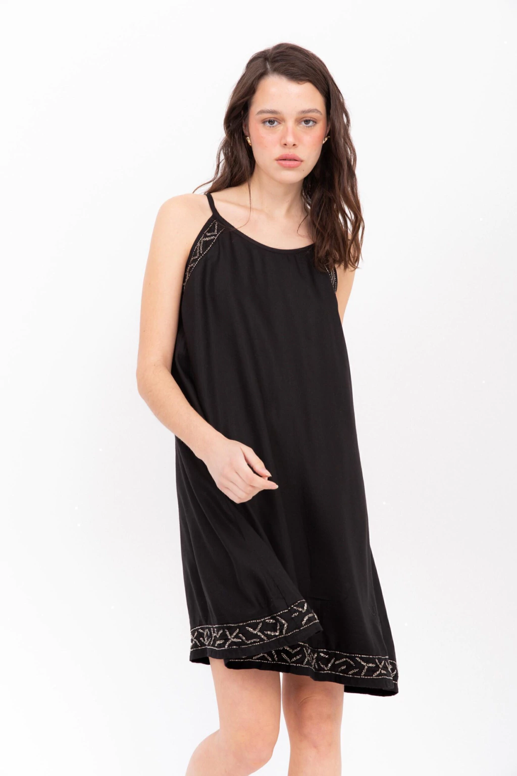El Vestido Elegante Flora de UTZZIA está confeccionado en un género de viscosa con caída suave y fluida, ideal para lograr una silueta delicada y femenina. De manga americana, se destaca por su guarda bordada en piedras aplicada tanto en el ruedo como en la sisa delantera, aportando un toque sofisticado y distintivo. Una prenda elegante pensada para ocasiones especiales o para elevar tus looks con sutileza y estilo.