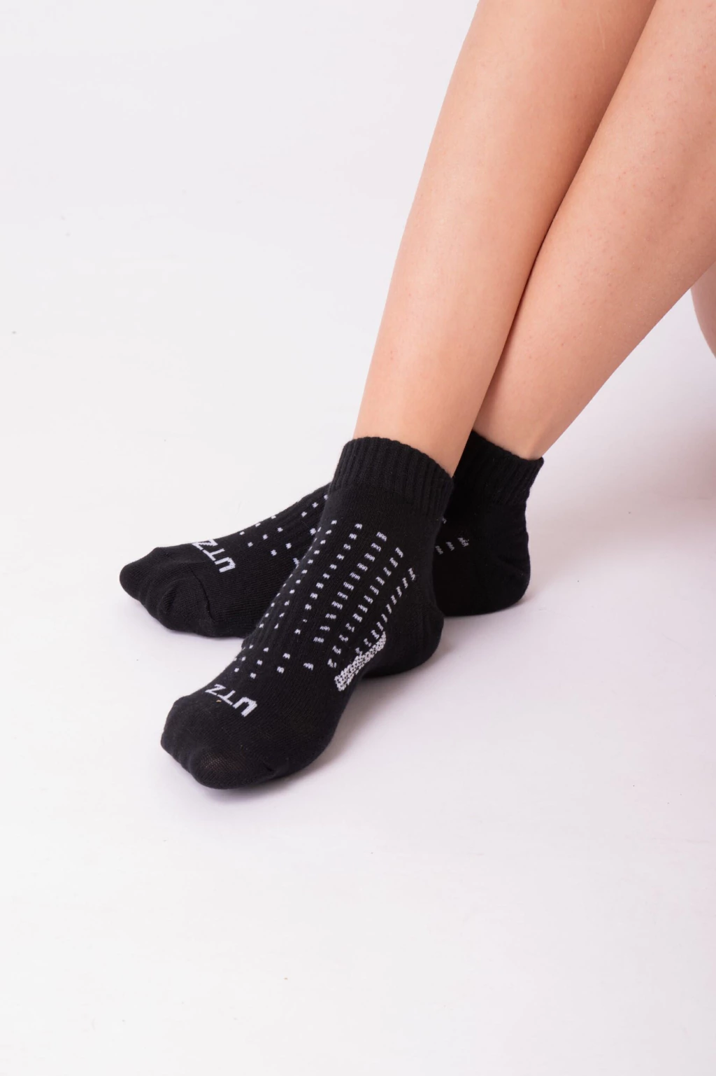 Pack de dos pares de zoquetes básicos confeccionados en mezcla de algodón y fibras sintéticas, que ofrecen comodidad y durabilidad para el uso diario. Disponibles en colores blanco y negro, perfectos para combinar con cualquier look.